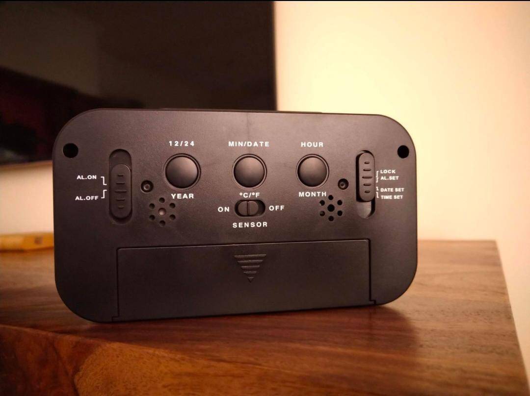 Ajanta digital Alarms Display Type-Digital Style-digital Special Feature-Snooze, Timer, Alarm Product Dimensions-46W x 79H Millimeters 1. LED light is very bright when pressed. 2. Night light was really surprising and icing on the cake as I didn't expect that. (sensor based illumination; can be turned on/off) 3. Progressive Alarm is very good. (Sound progresses, single beep, double beep and then full blast ) 4. light weight 5. temperature sensor 6. Ease of changing the time, alarm time, date. Material: Plastic, Color: Black Package Contents: 1 Table Clock and 3 AAA Batteries Item Size: 13 cm x 8 cm x 4 cm Mrp.910