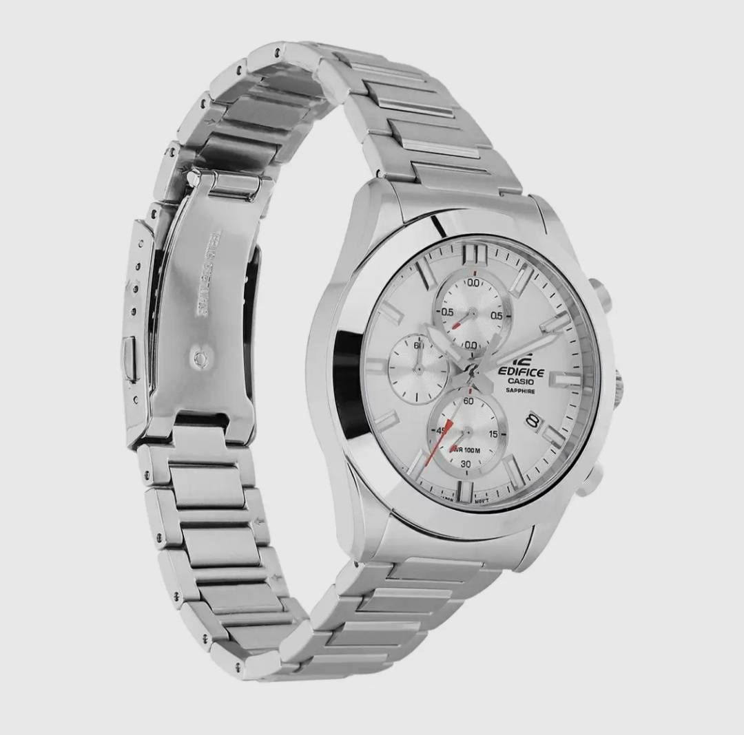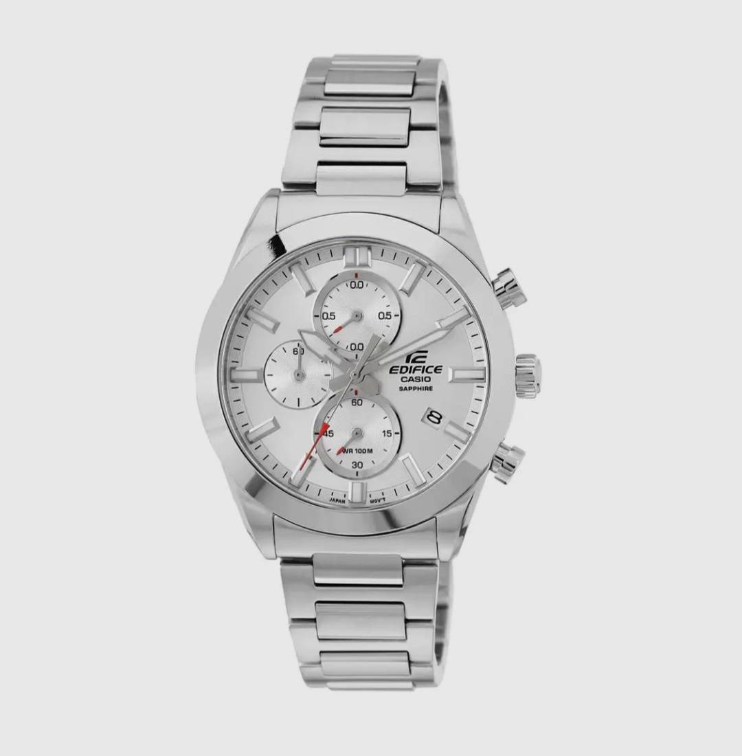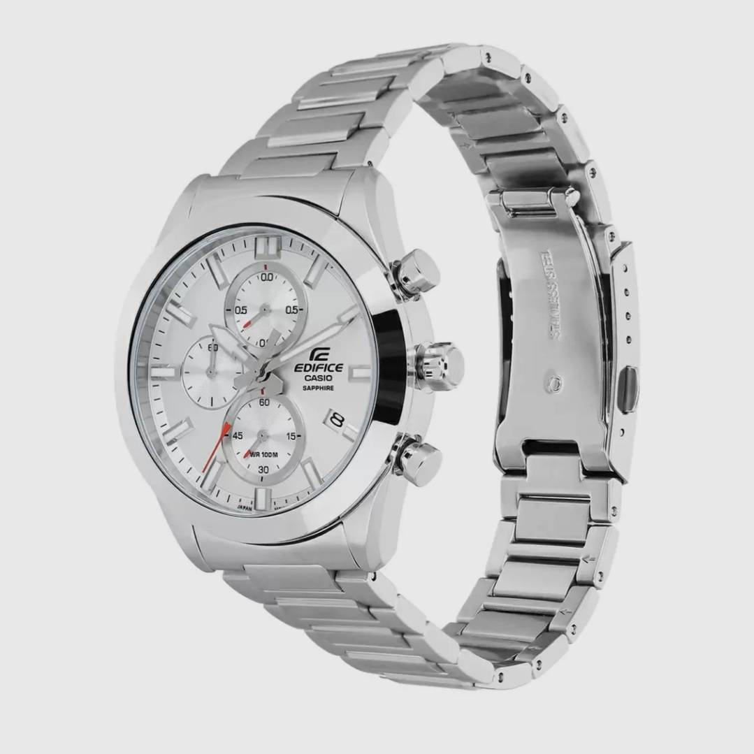 EDIFICE EFB-710D-7AVUDF - ED582 Silver Chronograph Men's Watch Mrp 11,995 Inclusive of all taxes Stainless Steel Chronograph Solid Band Sapphire Crystal 2 years warranty Trusted Japanese Quality