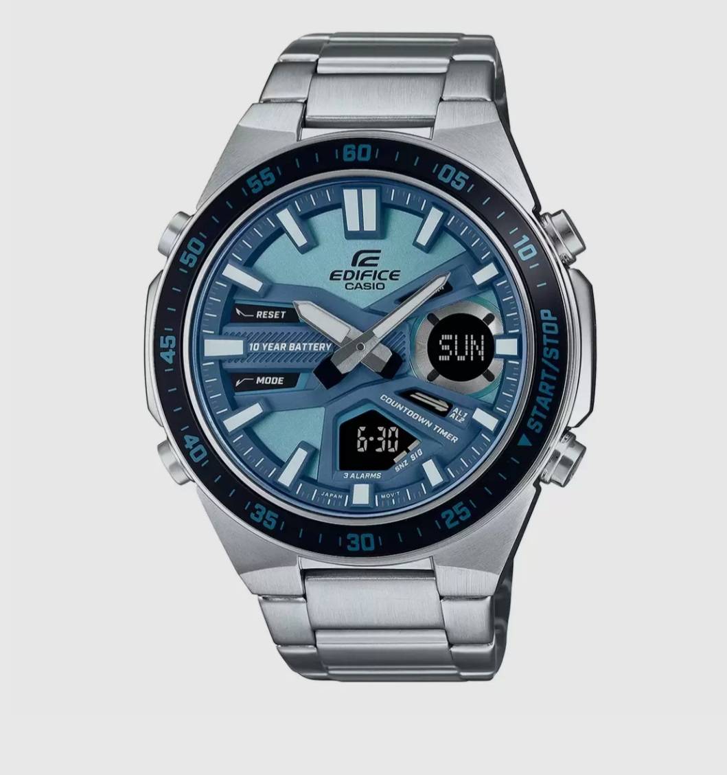 EDIFICE EFV-C110D-2BDF - ED599 ANALOG-DIGITAL Mrp 9,995 Inclusive of all taxes World Time Stopwatch Countdown Timer Auto Calendar Water Resistance 2 years warranty Trusted Japanese