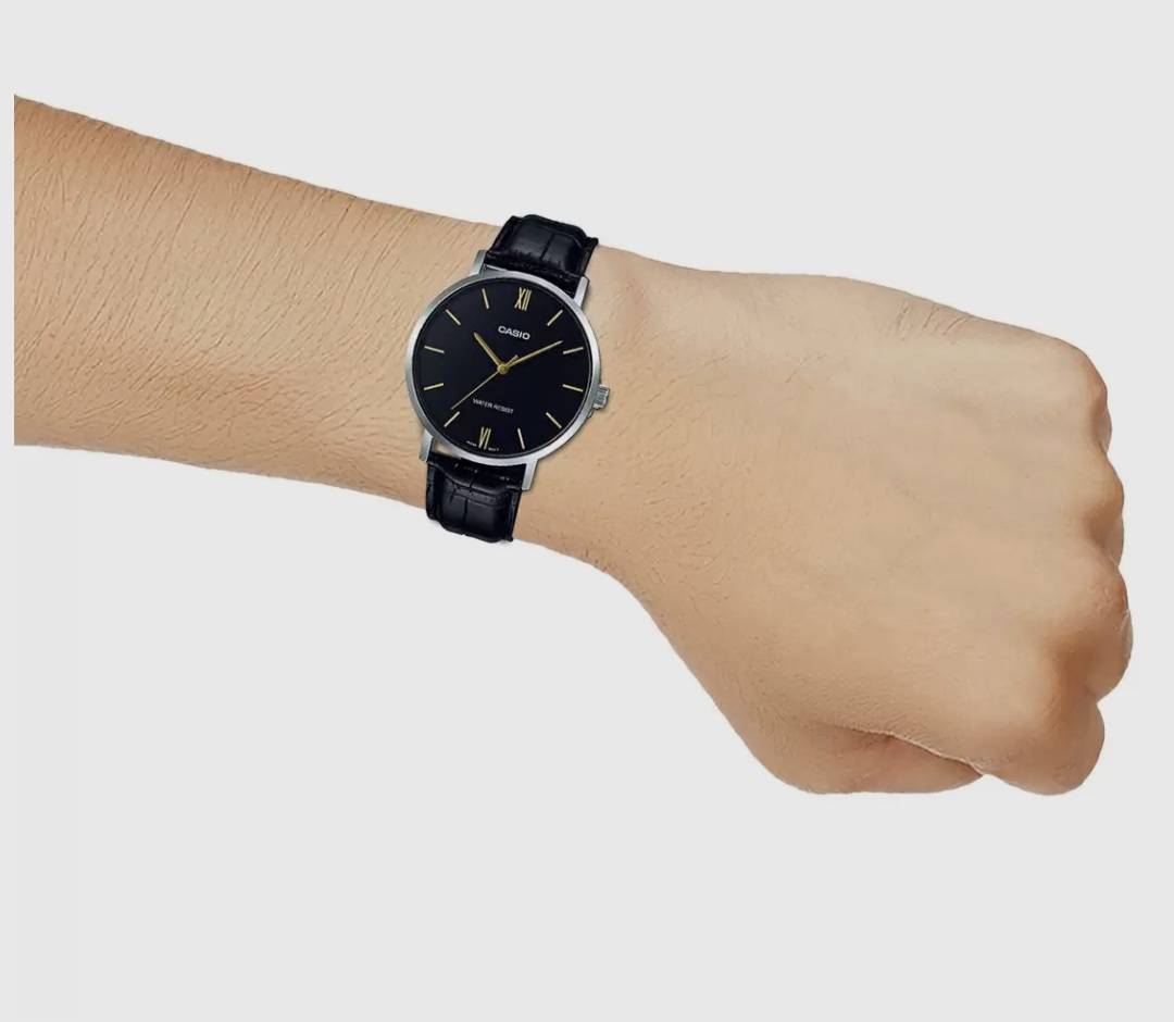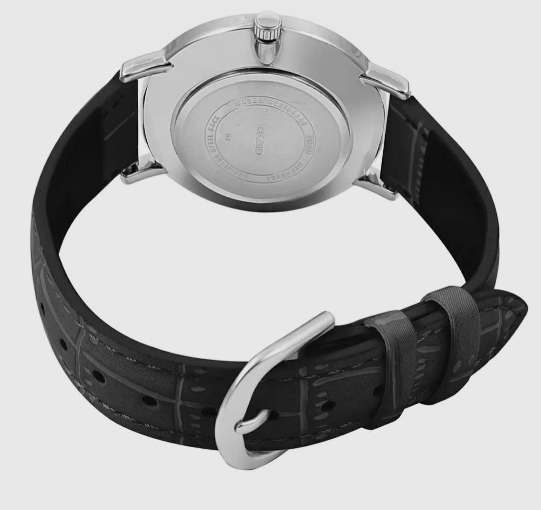 ENTICER MEN MTP-VT01L-1BUDF - A1615Black Leather - Men's Watch Mrp 3,295Inclusive of all taxes Leather Band Mineral Glass Water Resistant 2 years warranty Trusted Japanese Quality