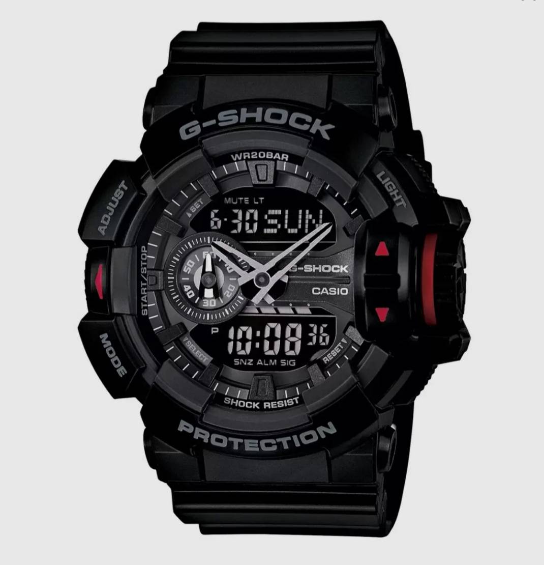 G-SHOCK GA-400-1BDR - G566Black Analog-Digital - Men's Watch Mrp 9,995Inclusive of all taxes Mineral Glass Magnetic Resistant Shock Resistant 200-meter water resistance Case / bezel material: Resin Resin Band 2 years warranty Trusted Japanese Quality