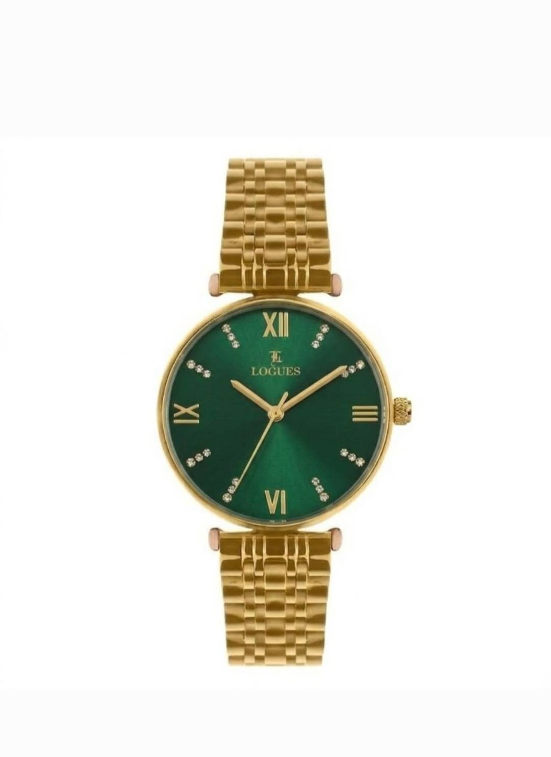 Material : Metal Size : Standard Season : Winter Description : Analogue Women Watch Green Dial Golden Metal Strap Logues L 6137 YM-10