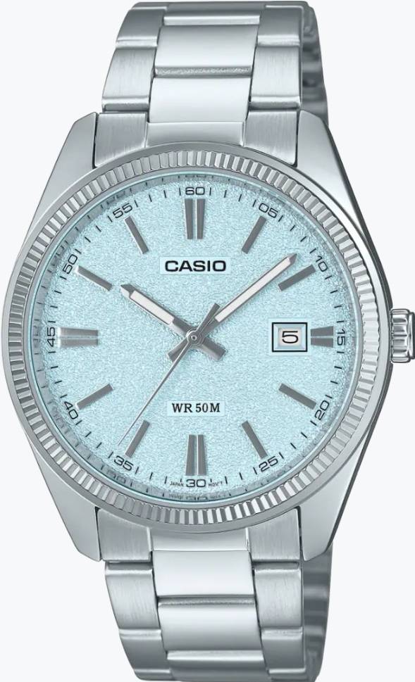 Matte dial with textured finish ・Stainless-steel band ・Date display ・50-meter water resistance STANDARD MTP-1302DA-2A2V NEW 10/2025 MRP ₹ 4,495 (incl. of all taxes) From left: MTP-1302DA-2A2V, MTP-1302DA-7AV Store Locator(Opens in a new tab) ・Matte dial with textured finish ・Stainless-steel band ・Date display ・50-meter water resistance Major Features 5 bar water resistant Cool matte color Specifications Basic Information Price MRP ₹ 4,495 (incl. of all taxes) Case size (L× W× H) 44.2 × 38.5 × 9.4 mm Weight 104 g Case and bezel material Ion plated Band Stainless Steel Band Triple-fold Clasp Water resistance 50-meter water resistance Power supply and battery life Approx. battery life: 3 years on SR626SW Net Quantity 1 piece Indian Product Code A2486 CoD charges