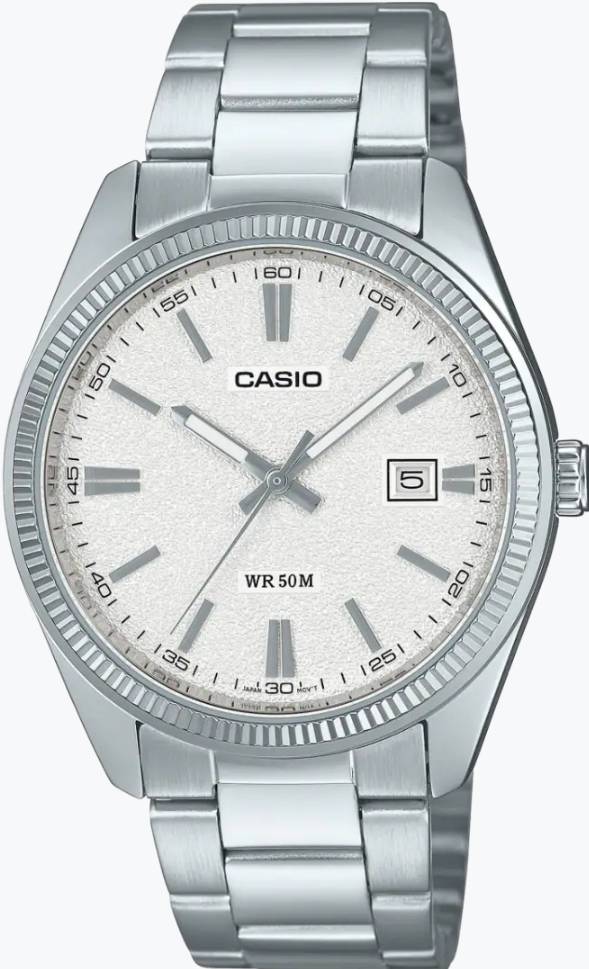 Matte dial with textured finish ・Stainless-steel band ・Date display ・50-meter water resistance MRP ₹ 4,495 (incl. of all taxes) Case size (L× W× H) 44.2 × 38.5 × 9.4 mm Weight 104 g Case and bezel material Ion plated Band Stainless Steel Band Triple-fold Clasp Water resistance 50-meter water resistance Power supply and battery life Approx. battery life: 3 years on SR626SW Net Quantity 1 piece Indian Product Code A2488 Cod charges