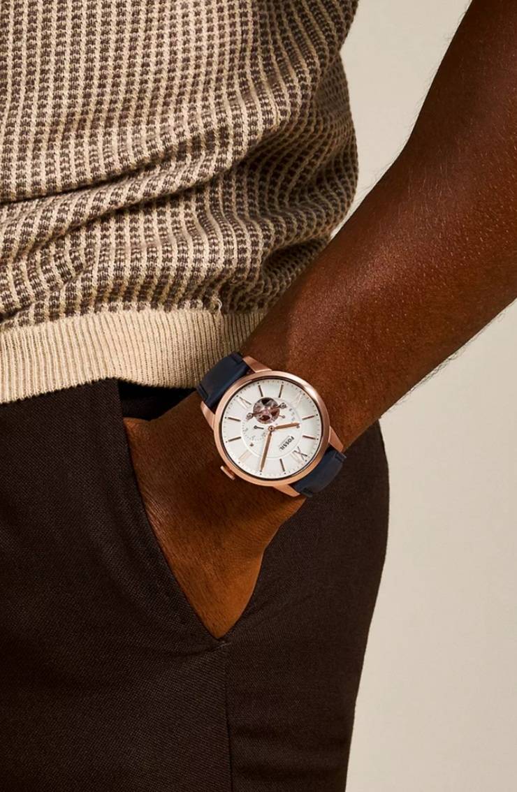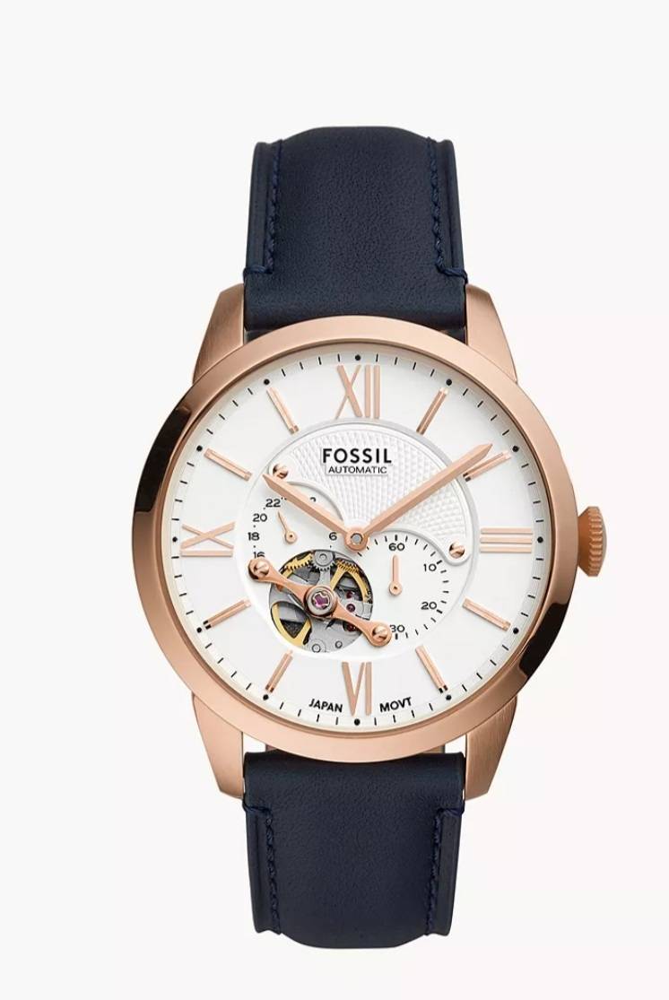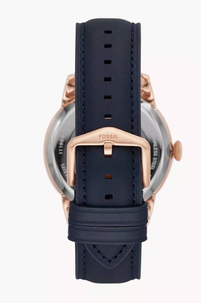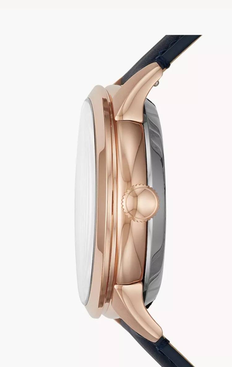 Sku: ME3171 Case Size: 44 mm Movement: Automatic Multifunction Platform: TOWNSMAN AUTO Strap Material: Leather Strap Colour: Blue Case Water Resistance: 5 ATM Case Material: Stainless Steel Generic Name: Traditional Watches Case Colour: Rose Gold Dial Colour: White Strap Fashion Colour: Navy Interchangeable Compatibility: 22 mm Strap Width: 22 mm Closure: Single Prong Strap Buckle Strap Inner Circumference: 200 +/- 5 mm Crystal Type: Mineral Battery Type: No Battery