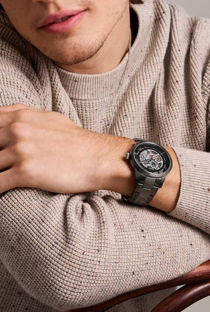 Sku: ME3268 Case Size: 44 mm Movement: Automatic Three-Hand Platform: TOWNSMAN Strap Material: Stainless Steel Strap Colour: Gunmetal Case Water Resistance: 5 ATM Case Material: Stainless Steel Case Colour: Gunmetal Dial Colour: Clear Strap Fashion Colour: Smoke Interchangeable Compatibility: 22 mm Strap Width: 22 mm Closure: Single Pusher Foldover Clasp Strap Inner Circumference: 200 +/- 5 mm Crystal Type: Mineral Battery Type: No Battery