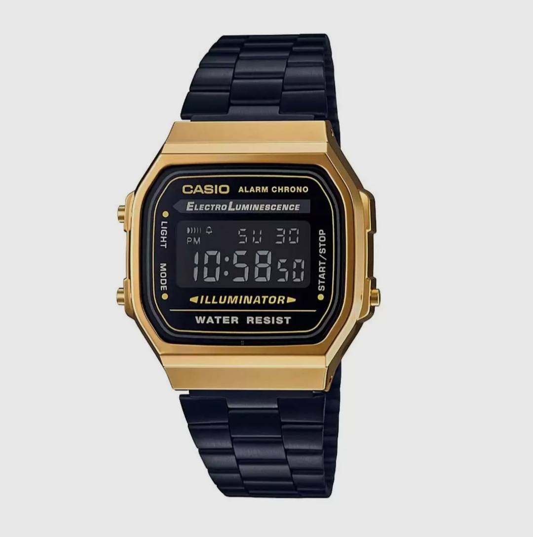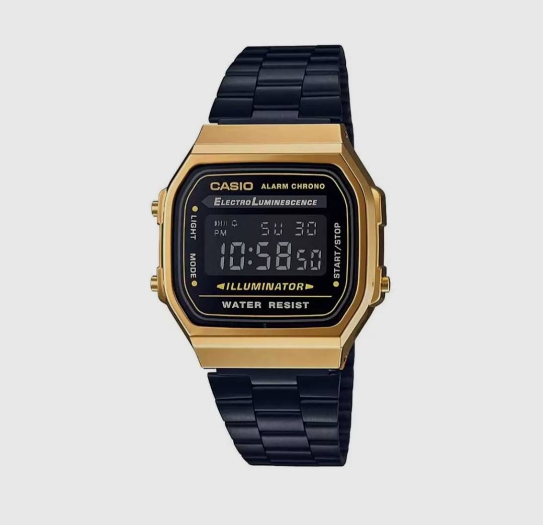 VINTAGE COLLECTION A168WEGB-1BDF - D148 Black Digital - Unisex Watch Mrp 5,295 Inclusive of all taxes Water resistant Daily alarm 1/100-second stopwatch Electro-luminescent backlight 2 years warranty Trusted Japanese Quality