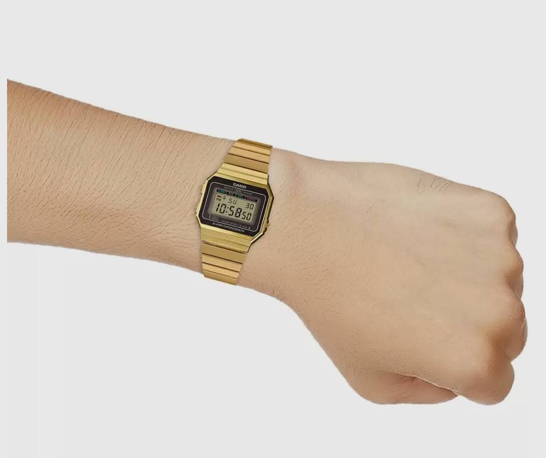 VINTAGE COLLECTION A700WG-9ADF - D198Gold Digital - Unisex Watch Mrp 5,295 Inclusive of all taxes Case / bezel material: Resin Adjustable Clasp Stainless Steel Band Mineral Glass Gold ion plated band Gold ion plated case Water Resistant 2 years warranty Trasted Japanese Quality