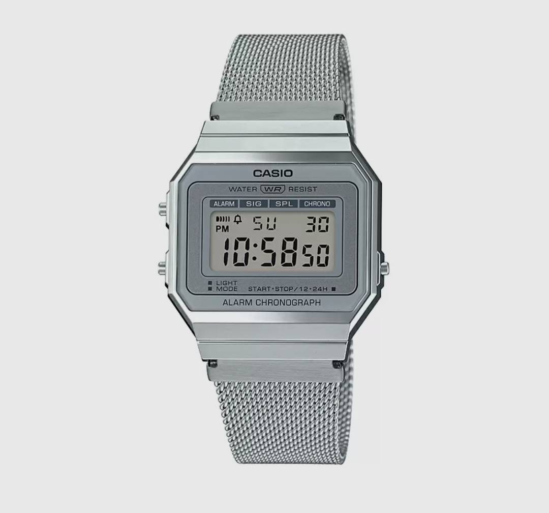VINTAGE COLLECTION A700WM-7ADF - D170Silver Digital - Unisex Watch Mrp 3,695Inclusive of all taxes Vintage Collection SUPER SLIM CASE Water resistant LED backlight 1/100-second stopwatch Daily alarm Stainless steel band 2 years warranty Trusted Japanese Quality